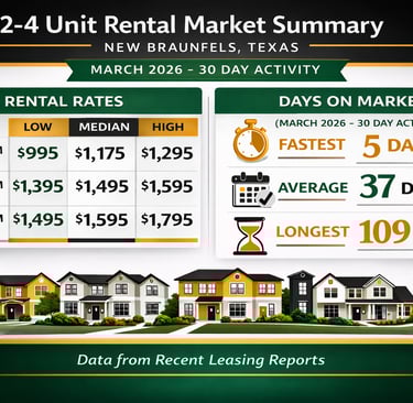 What are small multifamily units actually renting for right now in New Braunfels? This breakdown of the last 30 days of rental data gives investors and property owners a clear picture of rent ranges, demand, and market dynamics—so you can make smarter decisions around pricing, upgrades, and future investments.